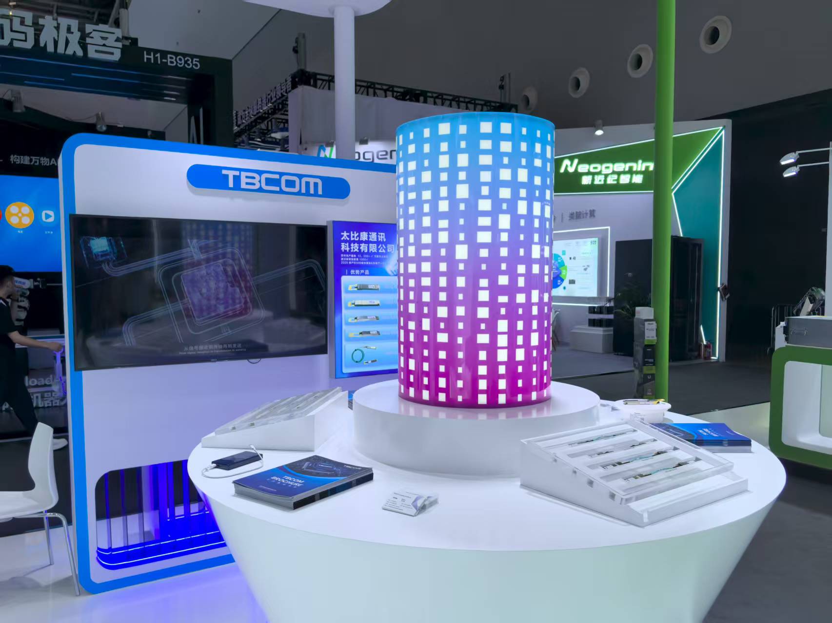 在WAIC的展览现场,太比康展台以"智汇太比康 · 芯创光未来"为主题,全方位展示了面向AI时代的光通信解决方案。