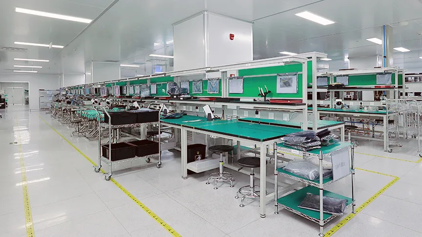 苏州生产基地共有12,000+平方万级无尘车间 ,提供从器件、COB、 组装、测试一站式的生产流程。